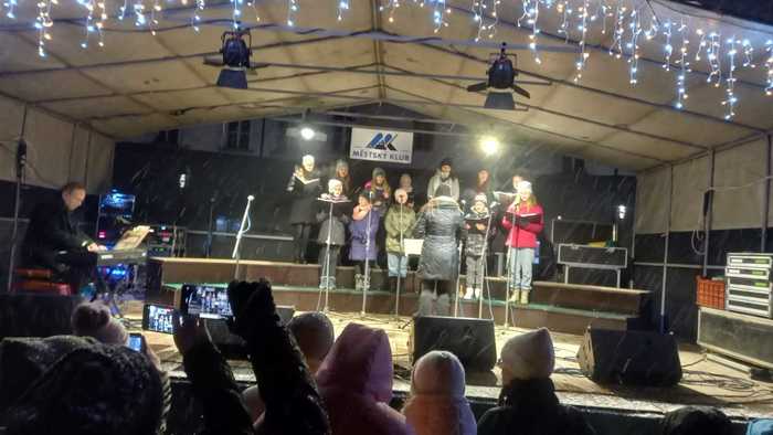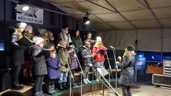 Náš dětský pěvecký sbor Mládí i Benjamínek zpívali na litovelském náměstí před rozsvícením vánočního stromu.