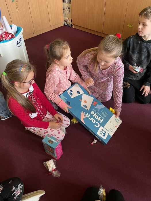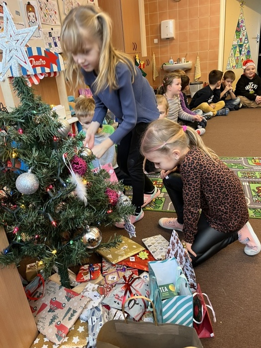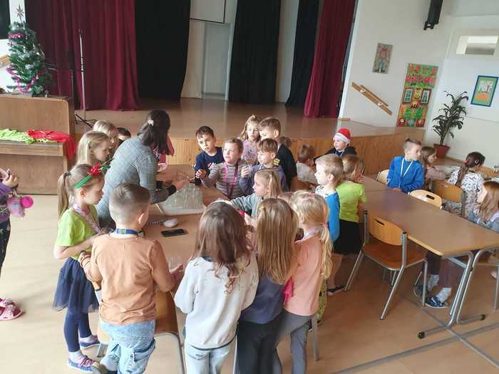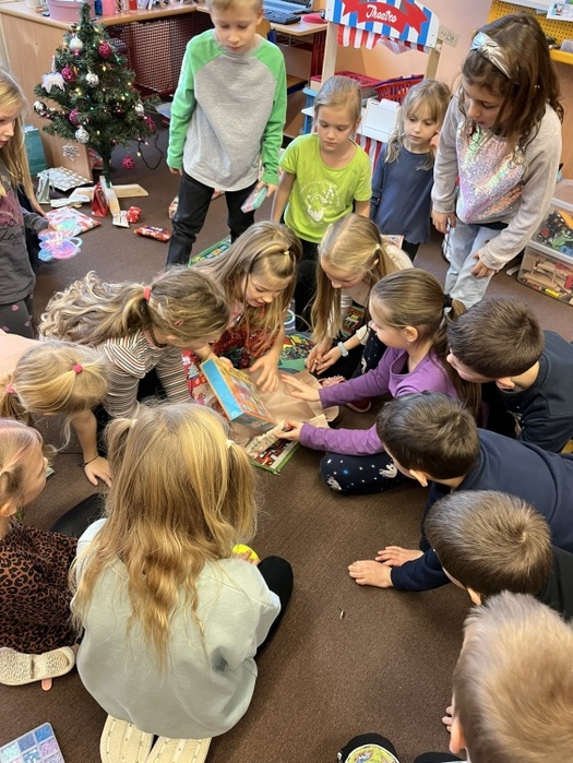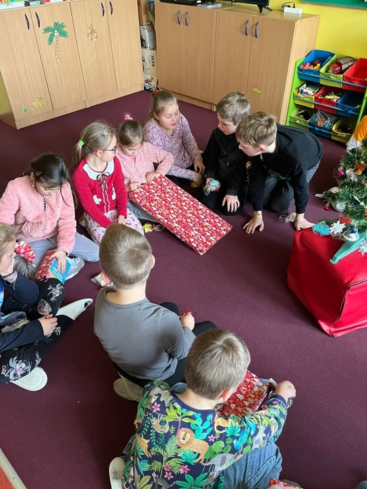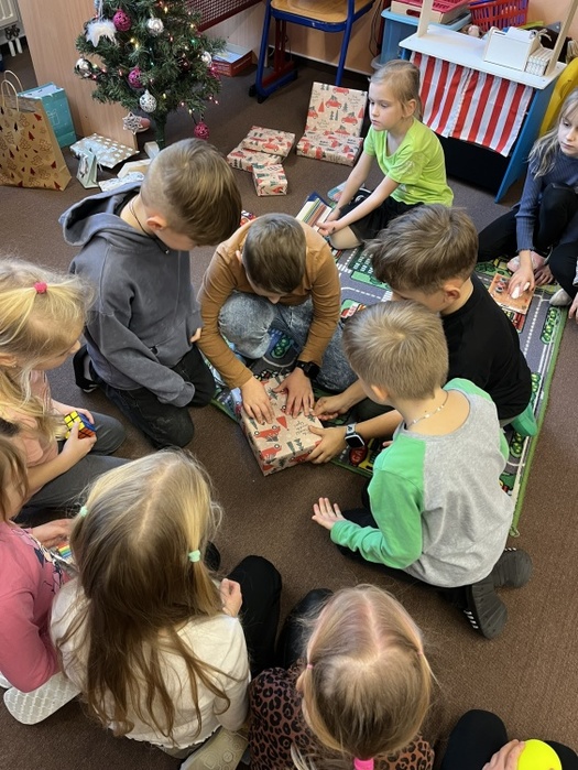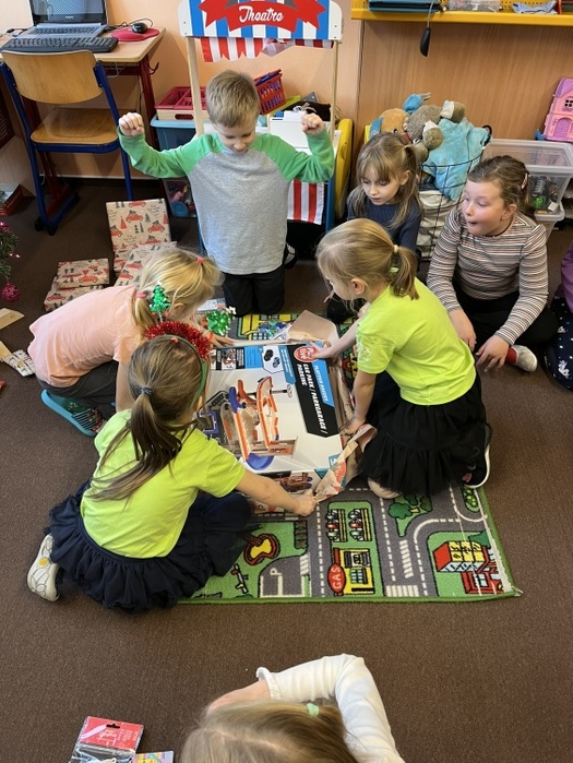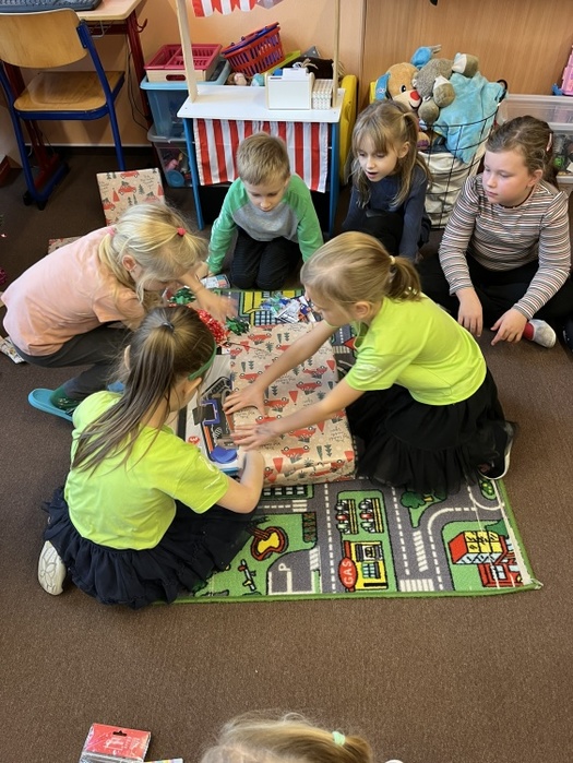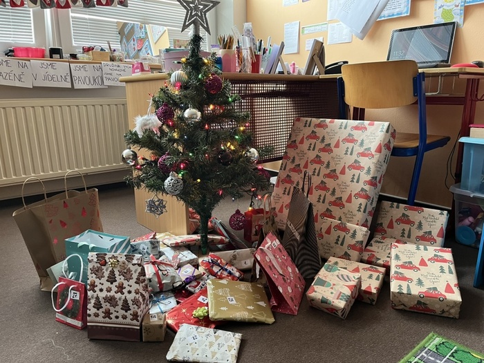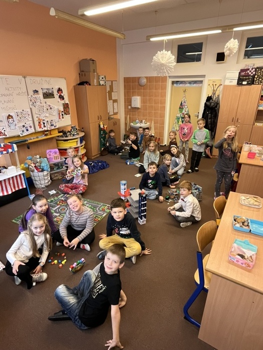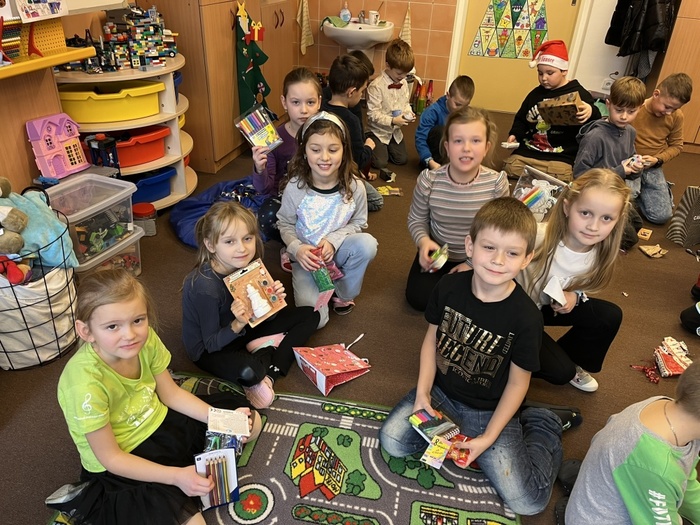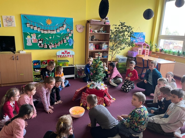 Ukončení roku 2024 - vánoční besídky v družinkách. Každá družina si udělala vánoční besídku, děti si nadělovaly dárečky jak mezi sebou, tak do každé družinky přiletěl i Ježíšek a donesl nové hračky. Nechybělo ani dětské šampaňské na přípitek a ochutnávka cukroví od maminek. Každé oddělení si užilo své vánoční odpoledne po svém a všichni byli spokojení.
