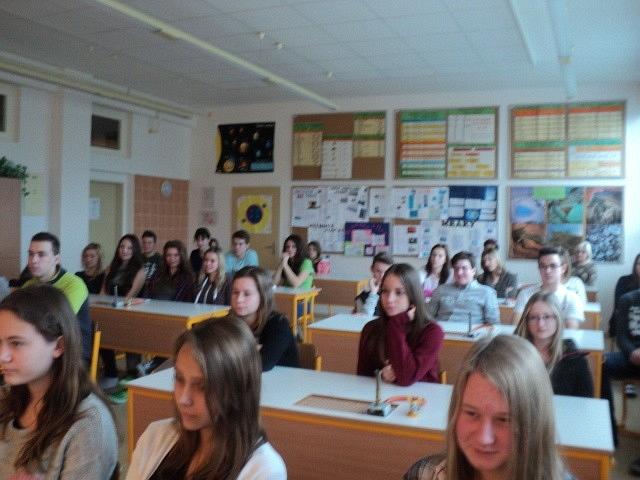 Vyprávěl o tehdejší škole, o nedostatku potravin, systému na lístky, o strachu z prozrazení otce, o mamince ve vězení. Jako syn židovského otce byl totiž v horší situaci než ostatní spolužáci. Dnešní deváťáci byli uneseni a dojati jeho příběhem a poutavým vyprávěním. Beseda se nám velice líbila a zanechala v nás silný zážitek.