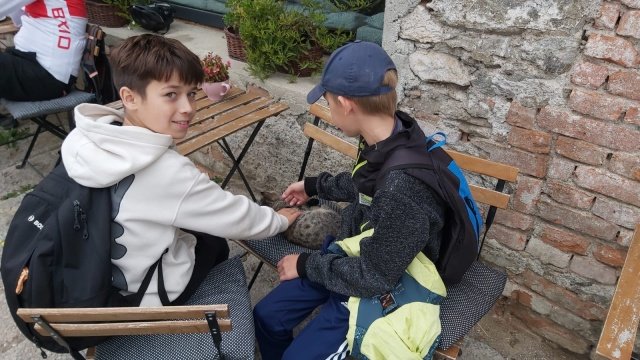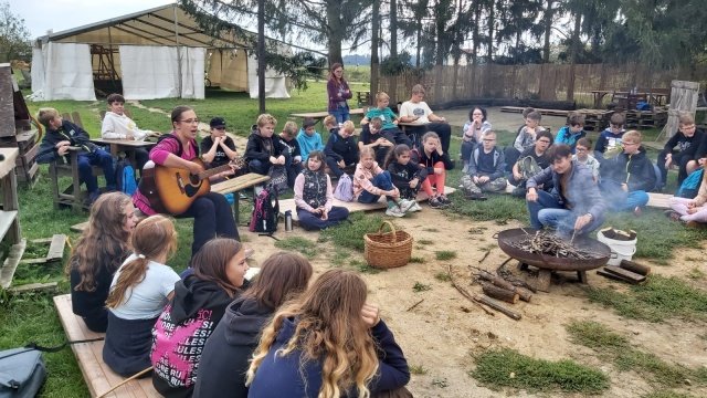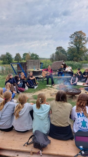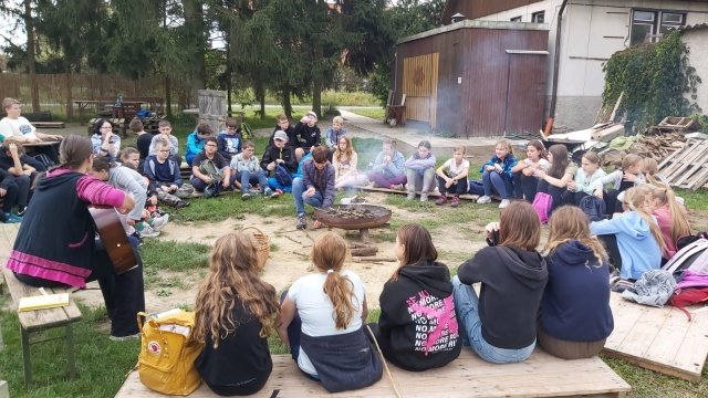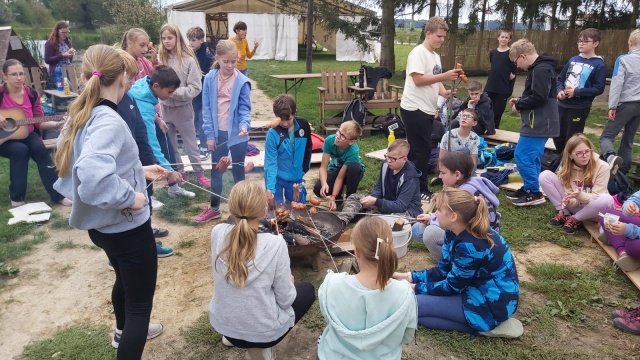 „Adapťák“ proběhl v úterý 24. 9. na Doubravském dvoře, kam se děti přesunuly po vlastní ose. A cestou už na ně čekalo několik úkolů, ve kterých mohly projevit smysl pro spolupráci. Na Doubravském dvoře si pak u táboráku opekly špekáčky a zazpívaly si s paní učitelkou Ivetou Navrátilovou, která s sebou vzala i svou kytaru. Po táboráku se pak třídy vystřídaly při aktivitách s padákem a dalších hrách.