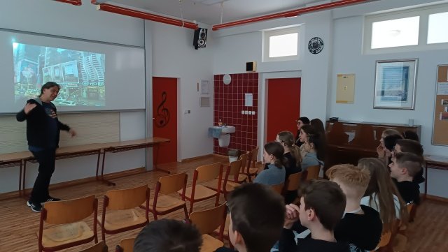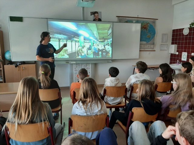 Během pondělí 18. a středy 20. března se pro jednotlivé třídy 2. stupně konaly cestopisné besedy s panem Karlem Kocůrkem zaměřené na Spojené státy americké, do kterých se vypravil celkem osmkrát. Filmový dokument přinesl dětem jedinečné záběry z divoké přírody a především indiánských vesnic. Nechyběly však ani obrázky z velkoměst a ze života tamních obyvatel.