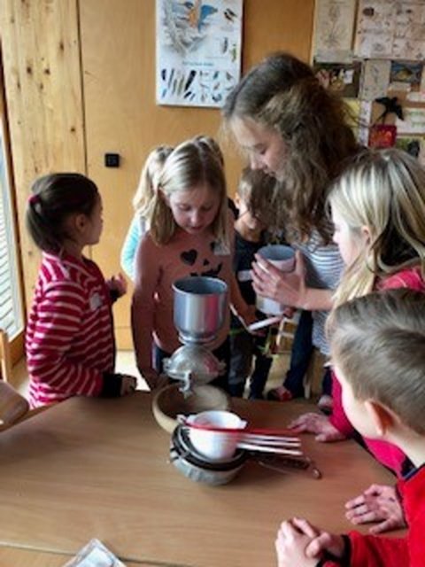 Jak je to již dobrým zvykem, v listopadu se zúčastnily tři třídy na prvním stupni denních programů na Sluňákově. Tentokrát to byly třídy 2.B, 2.C a 3.A. Děti se naživo seznámily s netopýrem, s jeho vlastnostmi a způsobem života, jiné si zase vyzkoušely vymlátit obilí, pomlít zrno na mouku a upéct housku.