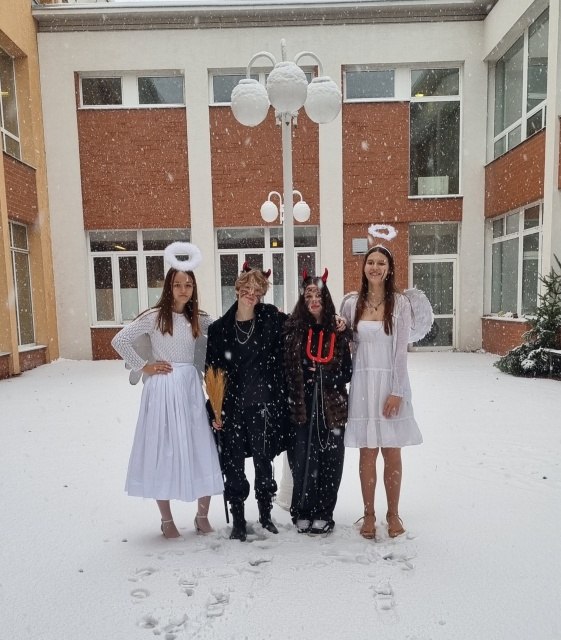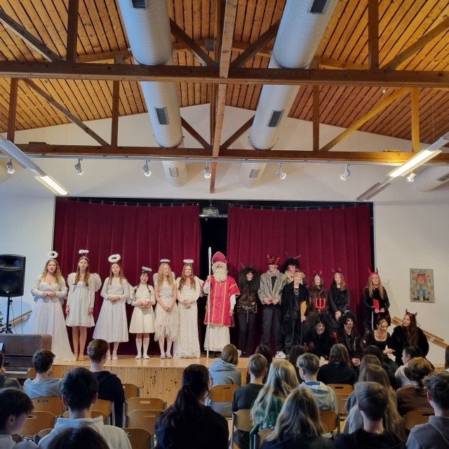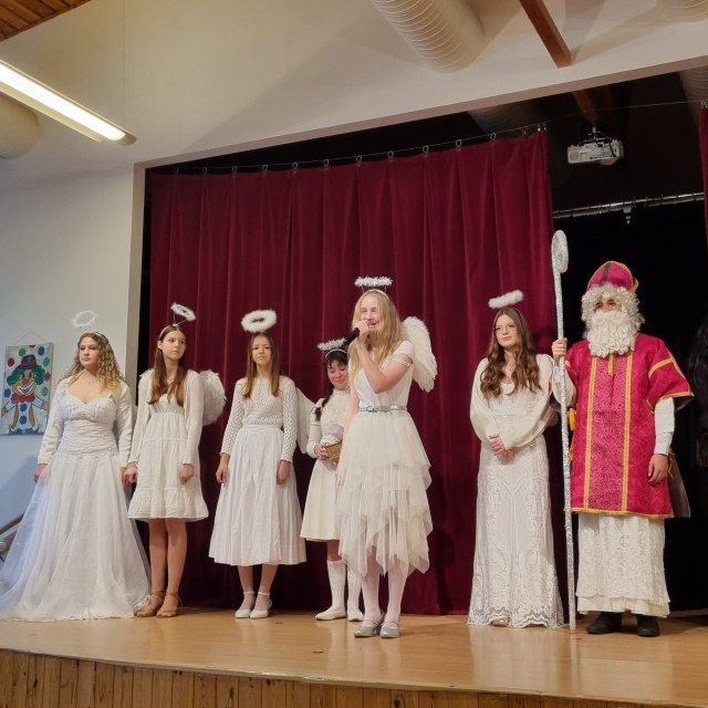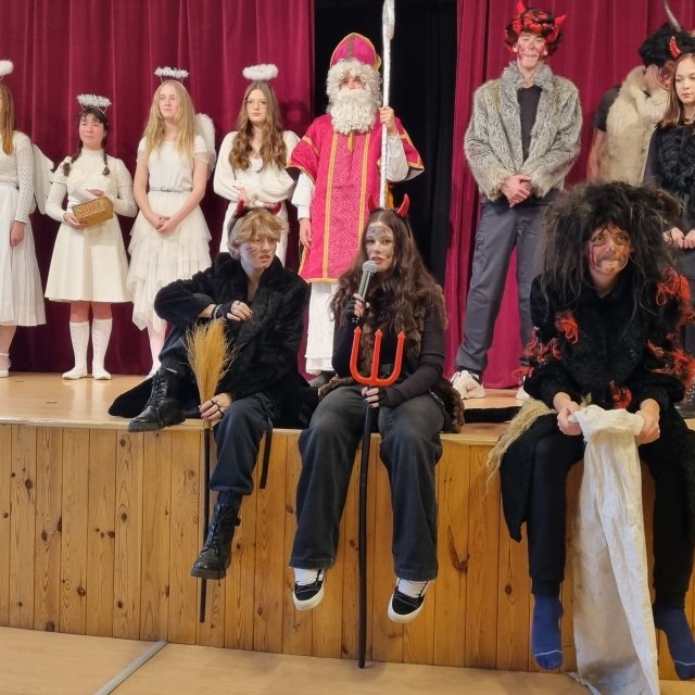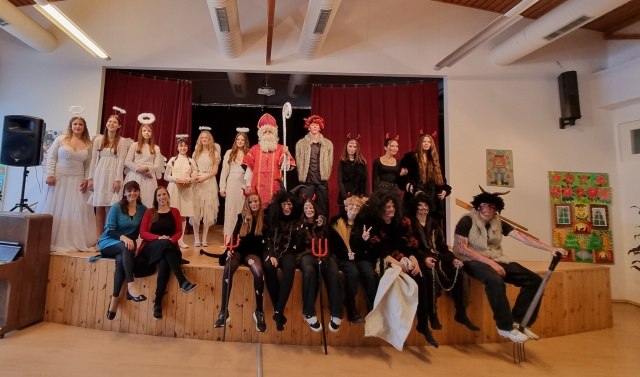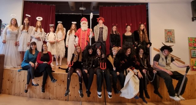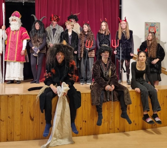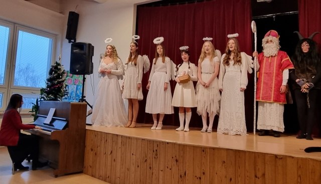 Mikuláš, andílci, ale i nezbední čerti předvedli posluchačům pásmo složené z koled a veselých rýmovaček. Společně si připomněli krásné tradice, zlobivým ukázali čerti pytel i metličku. Pro žáky všech tříd byl připraven krátký program. Čerti jim vypočítali všechny neřesti, kterými „zpestřují“ vyučování i přestávky. Společně si zazpívali známé vánoční písně a se sladkou nadílkou odcházeli zpět do svých tříd.