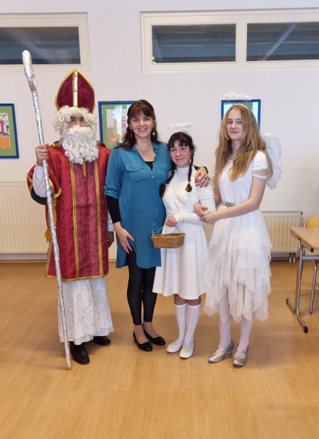Celý mikulášský program nacvičili žáci 9. tříd. Pod vedením p. uč. I. Navrátilové pilovali pěveckou část vystoupení. S paní. uč. Vagnerovou, autorkou mluveného slova, nacvičili recitační pasáže. Radostné tváře dětí, oči plné očekávání, pochvalná hodnocení, to vše jim bylo odměnou za vynaložené úsilí. Poděkování patří také RS při ZŠ Vítězná, které připravilo dobroty do andělských košíčků.