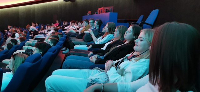 O týden později se exkurze týkala našich deváťáků, kteří jeli pro změnu do Brna na návštěvu planetária na Kraví hoře. Zhlédli jsme program pod názvem „Cesta za miliardou hvězd“ a naučili se poznávat nejznámější souhvězdí noční oblohy.
