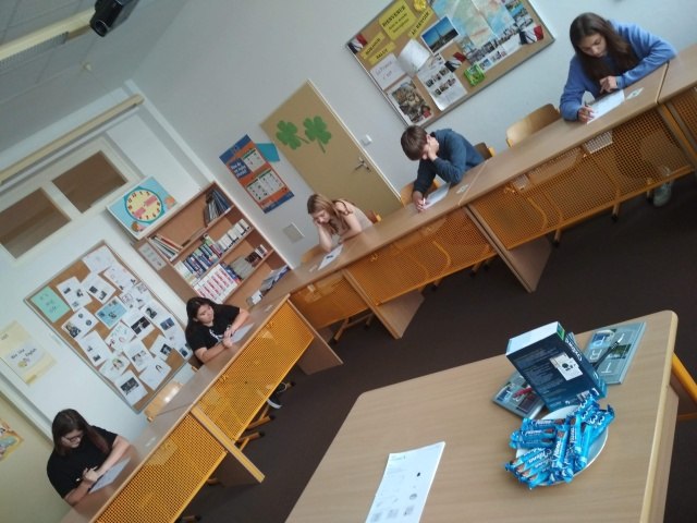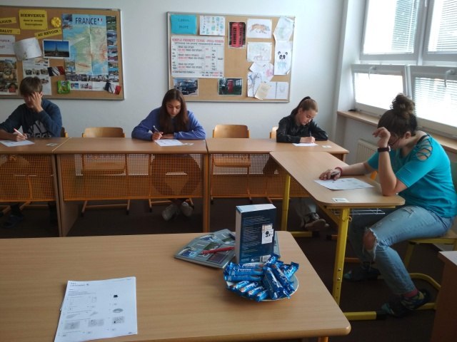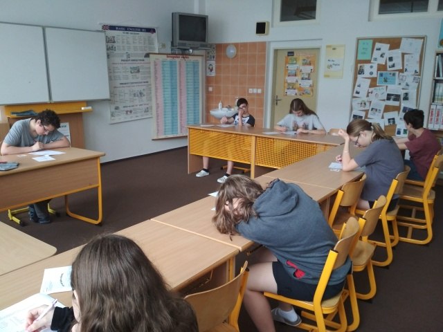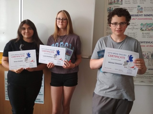V pátek 10. června proběhla na naší škole tradiční konverzační soutěž pro žáky z 8. a 9. tříd, kteří soutěžili ve třech jazykových disciplínách: poslech, porozumění textu a konverzaci v anglickém jazyce. Na předních pozicích se umístili žáci 9.B, a to na 3. místě Lucie Stratilová, na 2. místě Silvie Dubská a 1. místo získal Michal Chmelař. Pochvala patří všem účastníkům soutěže.