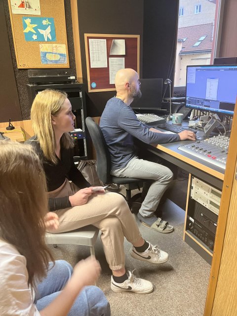 V letošním školním roce se naše škola zapojila do projektu společnosti Post Bellum Paměti našich sousedů. Součástí práce pětičlenného týmu žákyň z 8.A bylo i natočení reportáže v Českém rozhlase Olomouc. Byl to pro nás všechny nový a naprosto nezapomenutelný zážitek! Prohlédly jsme si prostory rozhlasu, používanou techniku, vyzkoušely si, jaký je to pocit, když se ve studiu rozsvítí červené světlo a váš hlas je nahráván, a sledovaly jsme mravenčí práci pana zvukaře, který jako kouzelník namíchal vše tak, aby výsledek byl co nejlepší!