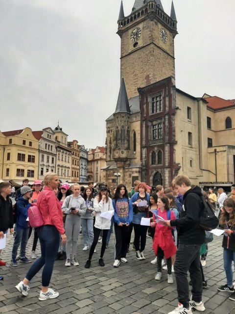 V měsíci květnu měli možnost žáci 7. ročníků absolvovat dějepisnou exkurzi v Praze. Společně jsme se vydali nejen po stopách Karla IV., ale i gotiky, což je umělecký sloh, který v rámci učiva 7. ročníku dominuje. Navštívili jsme tak Václavské náměstí, Orloj na Staroměstském námětí, Karlův most, Malou Stranu a v neposlední řadě Hradčany v čele s jejich dominantou Pražským hradem a katedrálou sv. Víta. Neunikla nám ani Zlatá ulička s finální destinací v podobě bývalého vězení – Daliborky. V průběhu exkurze žáci vyplňovali pracovní list, který získané zážitky a znalosti ukotvil.