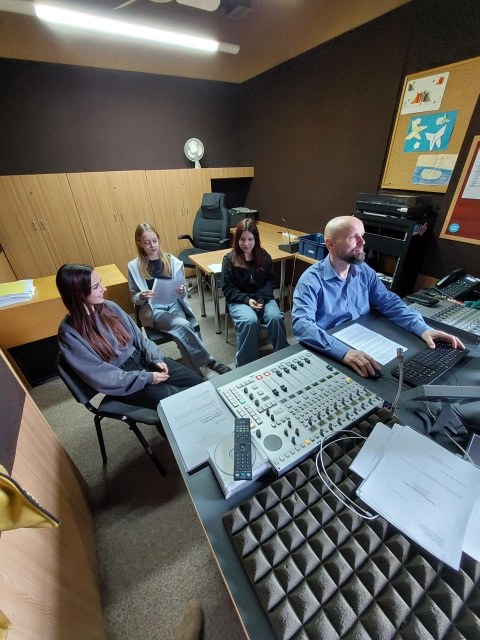 Ve středu 10. dubna jsme se vydali do Českého rozhlasu Olomouc! Žákyně 8.B si zde vyzkoušely práci v nahrávacím studiu – pod vedením zkušeného zvukaře namluvily a sestříhaly vlastní reportáž pro projekt Příběhy našich sousedů od Paměti národa. Jedná se o vzdělávací projekt, ve kterém žáci zaznamenávají vzpomínky pamětníků z jejich okolí. Skvělá zkušenost a spousta nových zážitků! Teď už nás čeká příprava na závěrečnou prezentaci spolu s ostatními týmy z Litovelska.