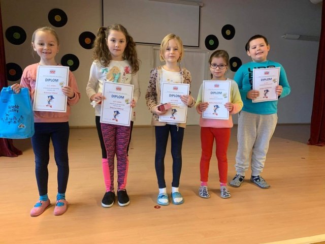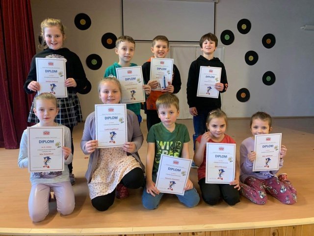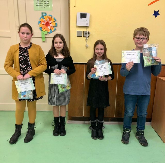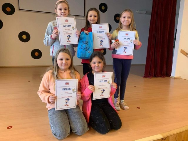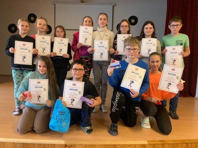 Dne 7.2.2024 proběhlo ve škole již tradiční školní kolo recitační soutěže pro žáky 1. stupně. Z 35 přednášejících žáků si ocenění převzali ti nejlepší z každé kategorie. Společně s žáky z 2. stupně reprezentovali naši školu dne 23.2.2024 v dalším kole v DDM v Litovli.