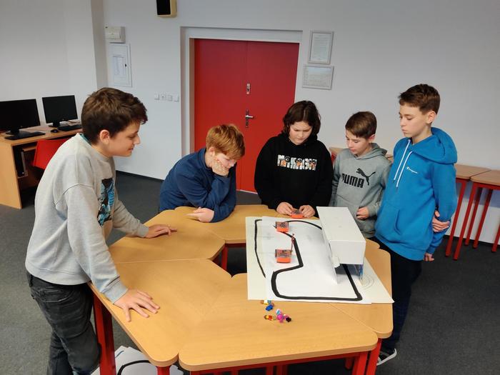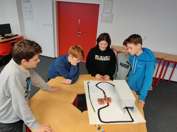 Kroužek je určen pro žáky sedmých tříd, kteří se již v šestém ročníku seznámili s blokově programovacím jazykem Scratch a mohli tak navázat na složitější programování robotů. Náplň kroužku byla nejprve zaměřena na programování robotického autíčka Edison. Pomocí Edisona si žáci prakticky vyzkoušeli algoritmizaci, seznámili se senzory zvuku, světelným senzorem či sledováním čáry. Ve druhé časti se žáci věnovali programování robotické stavebnice Vex IQ. Z této stavebnice si museli nejprve sestavit vlastního robota s využitím nejrůznějších senzorů a poté jej naprogramovat. Cílem bylo vytvoření zápasníků sumo, kdy se jeden robot za využití senzorů snaží vytlačit druhého robota z ringu. V průběhu celého školního roku jsme se také věnovali 3D tisku. Žáci se seznámili s 3D tiskárnou a s principy 3D tisku. V různých programech si navrhovali vlastní 3D modely, které si potom také sami vytiskli. Začínali s jednoduchými modely klíčenky se jménem a postupně se seznamovali s tvorbou složitějších modelů, včetně dvoubarevného tisku.