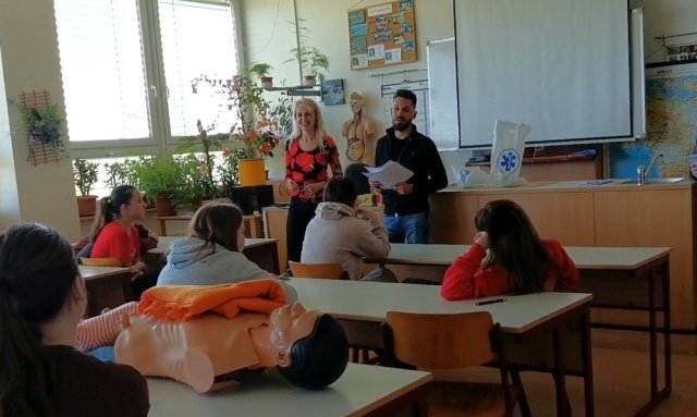 Školní kolo následně probíhalo v učebně přírodopisu pod vedením zkušeného záchranáře Daniela Hrona.