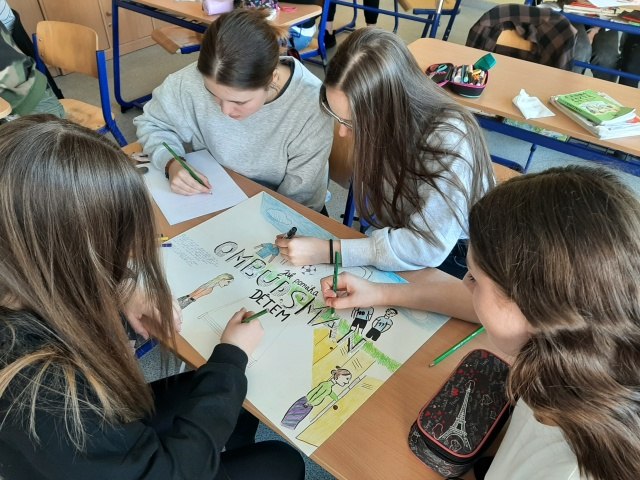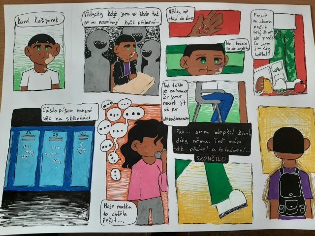 V průběhu měsíce března se třídy 6.B, 8.A a 8.B zapojily do soutěže, kterou vyhlásila Kancelář veřejného ochránce práv v Brně s názvem „Jak pomáhá ombudsman dětem?“. V hodinách občanské výchovy se žáci seznámili s náplní práce ombudsmana, povídali si o právech dětí, o diskriminaci a seznámili se s konkrétními případy, ve kterých již dětem pomohl. Žáci si podrobně prošli webové stránky kanceláře a podívali se na motivační video, které děti seznamuje se zástupkyní veřejného ochránce práv Mgr. Monikou Šimůnkovou. Na základě nově získaných znalostí a informací se rozhodly skupinky žáků ve třídách zpracovat soutěžní výzvu po svém. Třída 6.B si k tématu vytvořila s pomocí paní učitelky Pospíšilové novou nástěnku, skupinky z 8.A a 8.B kreslily společně plakáty a dívčí parta z 8.A natočila video. Do soutěže posíláme nejlepší práce žáků.