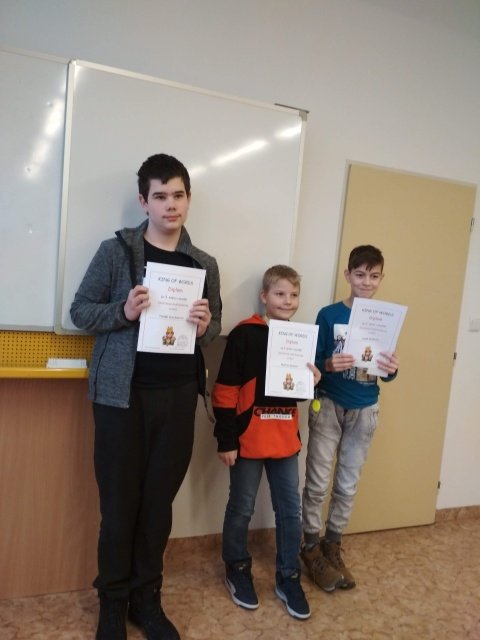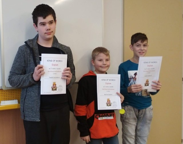 Ve středu 13. prosince se na naší škole uskutečnila tradiční soutěž v anglickém jazyce – Slovíčkový král/královna. Žáci 7. tříd dostali šanci otestovat si svou slovní zásobu, která je důležitou součástí při studiu cizích jazyků. Soutěže se zúčastnili naši žáci, žáci ze ZŠ Jungmannova, Pňovic, Senice na Hané a Bílé Lhoty. Slovíčkovým králem se stal Martin Kysela z Bílé Lhoty, z našich žáků se nejlépe umístila Kristýna Piňosová ze 7. C a to na pěkném pátém místě. Výherci si odnesli diplomy a pěkné ceny, všichni soutěžící pak sladkou odměnu, protože si ji opravdu zasloužili.