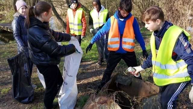 5.A postupovala od školy podél ramene Moravy směrem k Doubravce a 4. B uklízela za Billou a na cyklostezce směr Víska. Při sbírání žáci nacházeli různé předměty - hlavně plasty, plech, železné pletivo, skleněné lahve (většinou od lihovin) atd.
