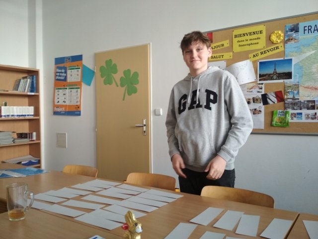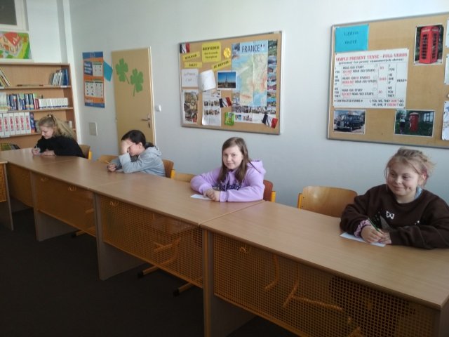 Tradiční soutěž v hláskování slov v anglickém jazyce o velkého čokoládového velikonočního zajíce proběhla ve středu 13. dubna po dvouleté pauze. Letos se soutěže účastnilo 20 žáků z 5. a 6. tříd naší školy. Výkony soutěžících byly velmi vyrovnané. Stejně jako v předchozích ročnících se hodnotila hlavně přesnost. Došlo i na nadstavované disciplíny ve finále. A nakonec se na 3. místě umístil Vojtěch Tyl ze 6. B, na 2. místě skončila Tereza Vařeková z 5. B a 1. místo si vybojovala - vyspelovala Tereza Chmelařová ze 6. B.