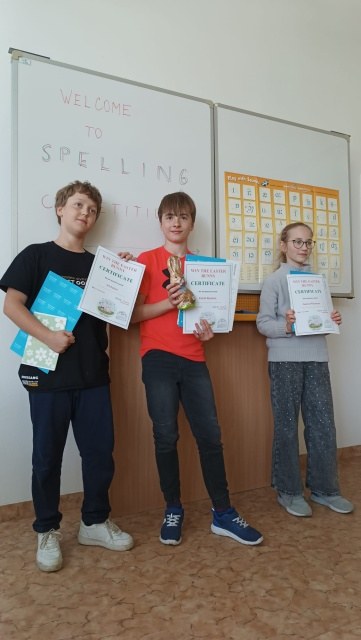 V pátek 11. dubna proběhla na naší škole tradiční soutěž v hláskování slov v anglickém jazyce o velkého čokoládového velikonočního zajíce. Soutěže se zúčastnilo celkem 23 žáků z 5. a 6. tříd naší školy, ZŠ Jungmannova, Pňovic, Bílé Lhoty a Senice na Hané. Výkony soutěžících byly vyrovnané, rozhodovala opravdu jednotlivá písmenka. Na 3. místě se umístil Vít Polzer z Pňovic, na 2. místě Zuzana Přikrylová ze ZŠ Jungmannova a 1. místo si vybojoval – vyspeloval Patrik Absolon z Pňovic.