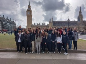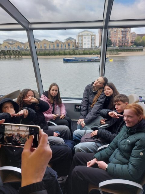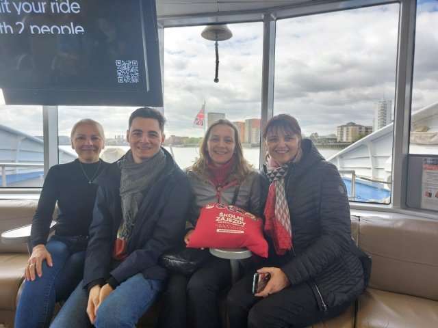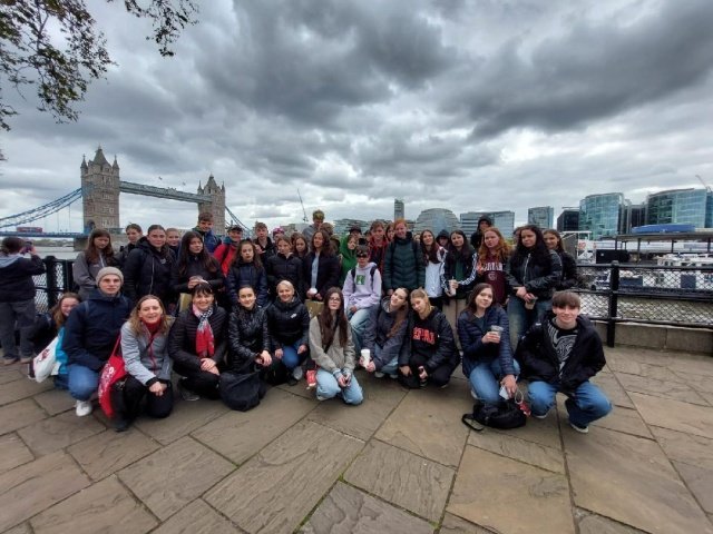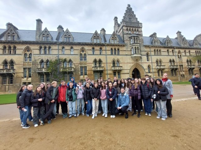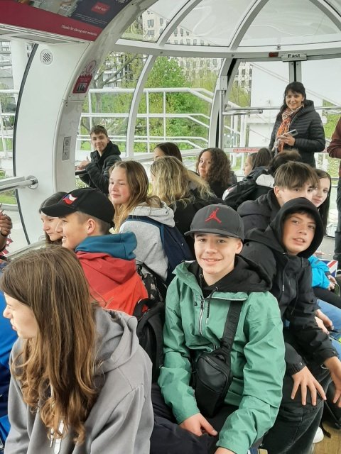 Ve dnech 21. 4. – 25. 4. 2024 se čtyřicet deváťáků a osmáků zúčastnilo poznávacího zájezdu do Londýna a Oxfordu. První den v Londýně jsme zahájili procházkou od Houses of Parliament, kolem Big Ben, Westminster Abbey, dále přes rozkvetlý St. James Park k Buckinghamskému paláci, kde právě probíhala výměna stráží. Trasa pokračovala na Piccadilly Circus , China Town, Leicester Square až k Trafalgar Square. Celodenní pěší putování jsme zakončili jízdou na vyhlídkovém kole London Eye. Pohled na Londýn z výšky 135 metrů byl úchvatný! Druhý den patřil zábavnému Muzeu Madame Tussauds. Odsud si každý odnášel mnoho fotek se svým oblíbeným hercem, zpěvačkou či sportovcem. Pak jsme odjeli do krásného města Oxford, které se pyšní nejstarší univerzitou ve Velké Británii. Zde jsme si prohlédli její kolej ze 16. století Christ Church College, jejíž interiéry se objevily ve filmech o Harry Potterovi. Třetí den patřil opět Londýnu. K pevnosti Tower, kde jsme obdivovali britské korunovační klenoty, jsme stylově připluli na vyhlídkové lodi po řece Temži. Nesměla chybět fotka před Tower Bridge a následovala procházka, během které jsme viděli nejvyšší mrakodrap ve Velké Británii The Shard, válečný křižník HMS Belfast, St. Paul´s Cathedral, Millenium Bridge, kopii Shakespearova divadla Globe a repliku lodi korzára Francise Drakea. Kromě pravého anglického počasí si účastníci zájezdu užili také pohostinnost anglických rodin, kde byli ubytovaní, cestování londýnským metrem, nakupování místních dobrot, suvenýrů, a samozřejmě dobrodružnou cestu trajektem přes kanál La Manche.