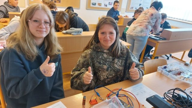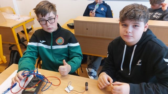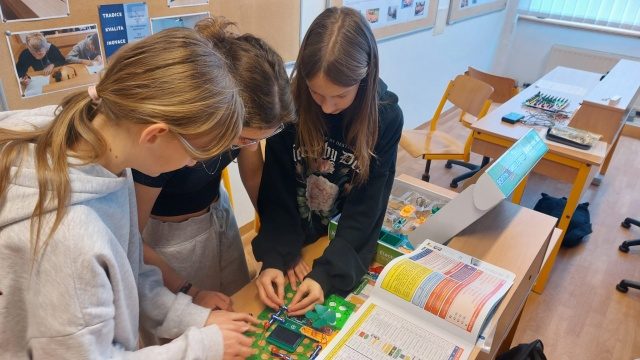 "Nejlepší bylo, když se nám po prvním zapojení rozsvítila dioda. Museli jsme si ale dát pozor, abychom rezistor zapojili správně, jinak dioda nesvítila," popisuje jeden z žáků.